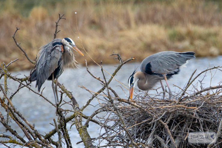 Great Blue Herons: Returning to their nest near Ruth Macintyre Conservation Area