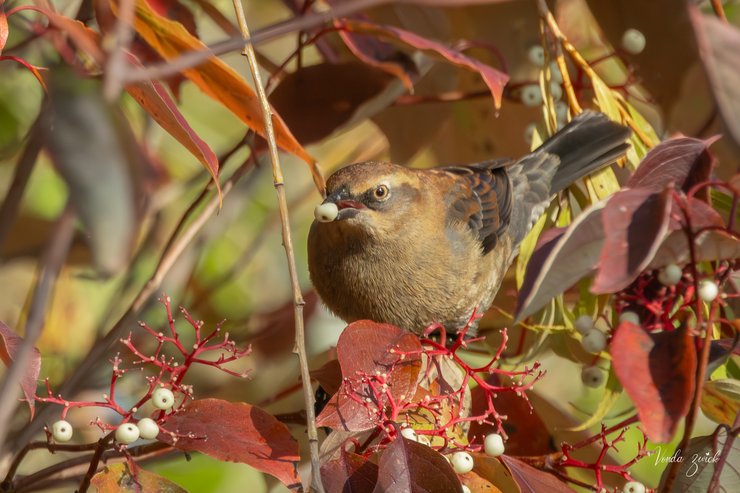 Rusty Blackbird: Eating Gray Dogwood berries