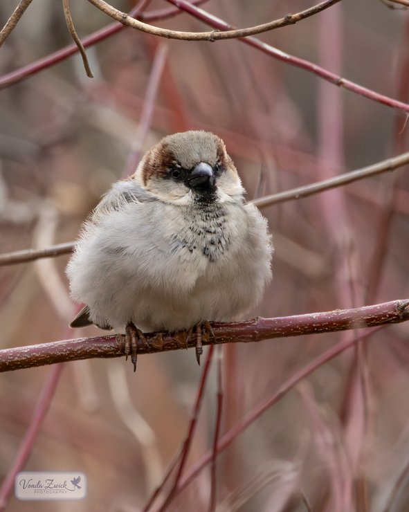 Species: House Sparrow, Red Osier DogwoodCamera Settings:
