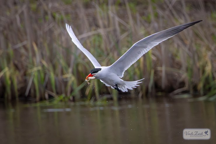 Caspian Tern: With fish at Horizon Farm